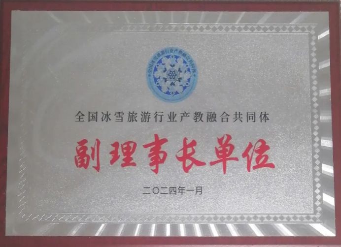 荣获全国冰雪旅游行业产教融合共同体副理事长单位。学院旅游管理系教授、博士、旅游管理专业负责人王继庆代表学院参加铭牌授予仪式。