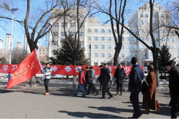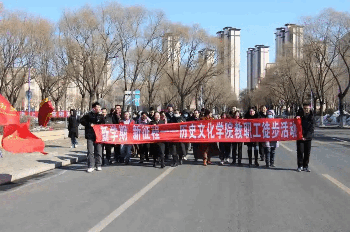 活动当天,全院教职工按照预定时间集结于人文楼前,由学院党委书记徐振岐发表讲话,宣布徒步活动开始。春气奋发,万物遽只。徒步队伍以人文楼为出发点,环校园徒步一周,最后回到人文楼前合影留念。