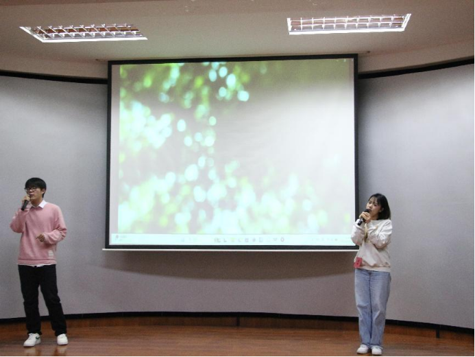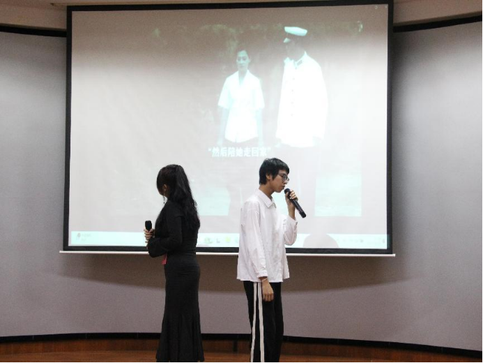 首先,梁凯博和齐佳慧同学为我们带来了一曲《一程山路》,“一叶曲折过后 又一道坎坷 走不出 看不破”但“潺潺流水最终又穿过了一座座群山”,他们以悠扬婉转的嗓音道出了对生活的深刻体验和领悟,表现了前途漫漫,人生起伏不定,但我们仍需坚持不懈,突破挑战。
