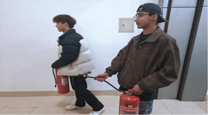 2024年4月9日晚,学院开展消防安全疏散演练。在学生干部的指挥下,同学们按照规划路线有序疏散,尽快到达室外宽阔场地。同时,进行了消防器材使用的模拟演练。