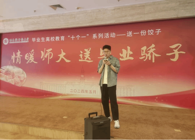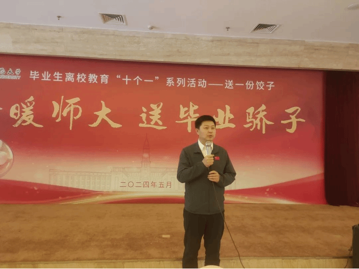 在梦溪宾馆金色大厅开展2024届毕业生离校教育“十个一”系列活动之“情暖师大,送毕业骄子”活动,学院领导老师和毕业生同品饺子,共话成长,畅聊未来,为毕业生践行。