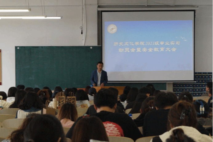 召开了 2021 级教育实习、专业实习动员暨安全教育大会。党委副书记李斌、副院长杨超、旅游管理专业实习负责人刘畅、文物保护技术专业实习负责人王冰、实习带队和指导教师,以及2021级历史学、旅游管理和文物保护技术专业全体同学参加了会议。