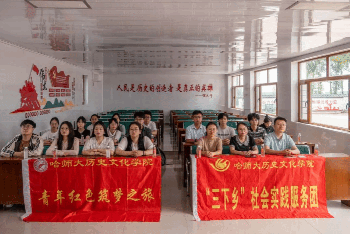 的本科生和研究生学子们在中国史教师党支部书记刘丽丽,学院教师金丽雪、韩厚明及教科办老师们的带领下,踏上了“青年红色筑梦之旅”及“三下乡”的征程。