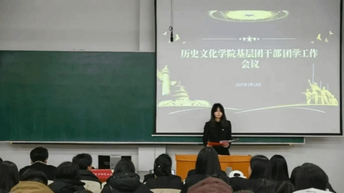 团务部部员樊瑞领学共青团中央于2025年1月1日施行的《中国共产主义青年团纪律处分条例》,引导全体团员遵规守纪,做合格的共青团员。