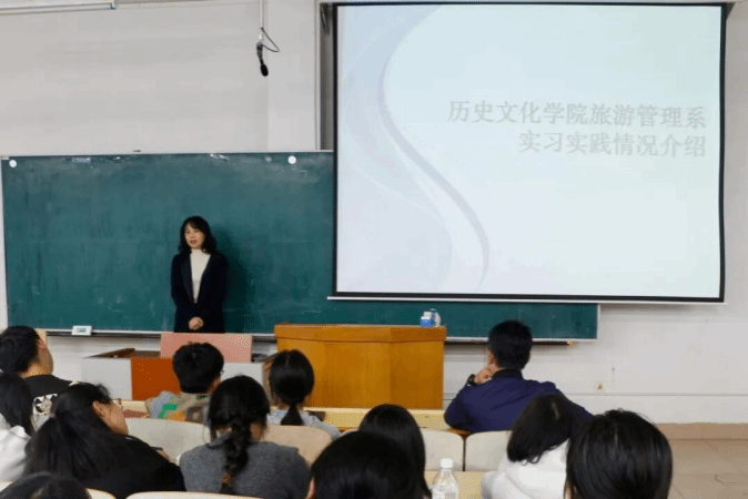 “纸上得来终觉浅,绝知此事要躬行。”实践教学是旅游管理专业人才培养的关键环节。实习负责人刘畅老师为同学们作了细致讲解,指出实践形式丰富多样,涵盖各级各类专业赛事、课程配套实践、旅游企业专家讲座及实习实训等。她鼓励同学们主动参与各类实践活动,在实践中磨炼自我、提升能力。