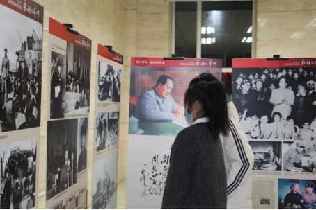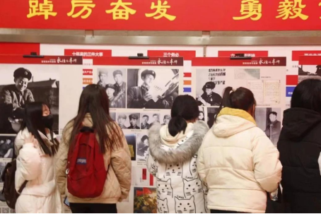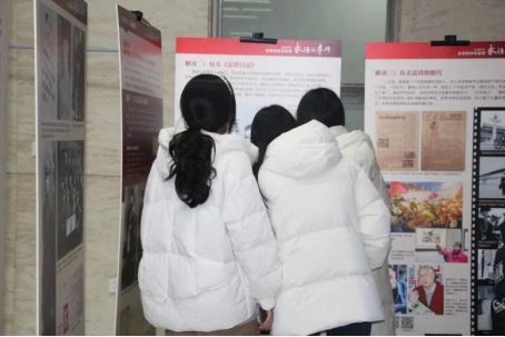 特于2022年3月4日组织学生在行知楼一楼大厅参观“永恒的丰碑”雷锋精神专题展。