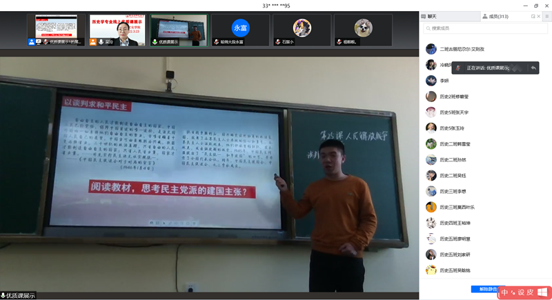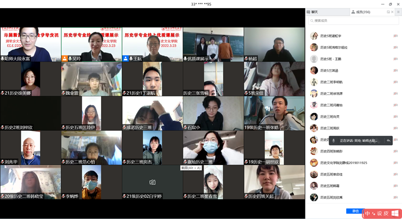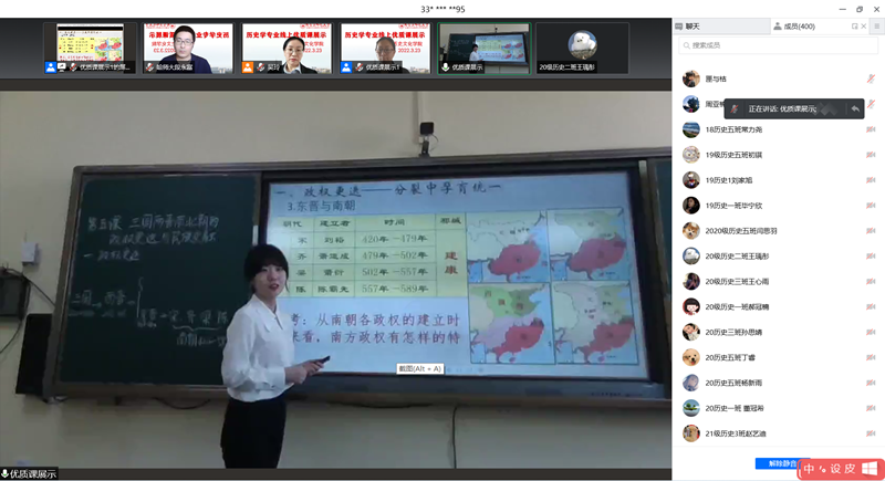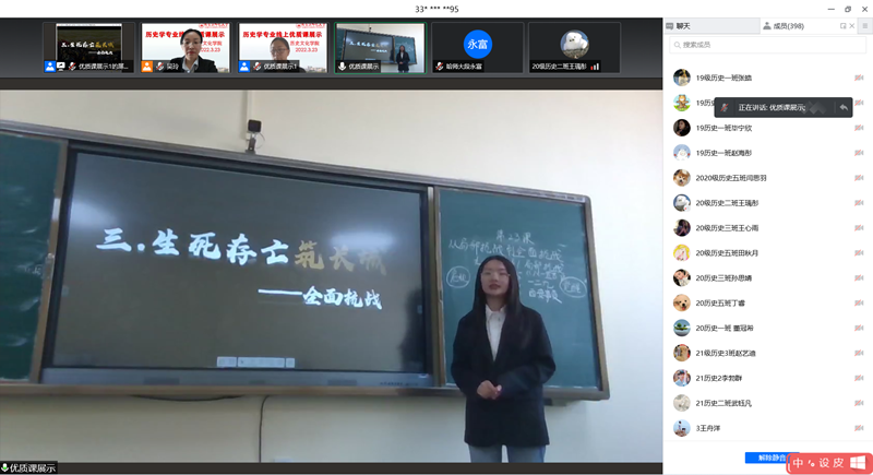 于2022年3月23日下午13:10—15:30,通过腾讯会议方式,举办线上优质课展示活动。学院副院长杨超、历史系主任吴玲、副主任段永富、王耘老师及历史学专业全体同学参加了此次活动。