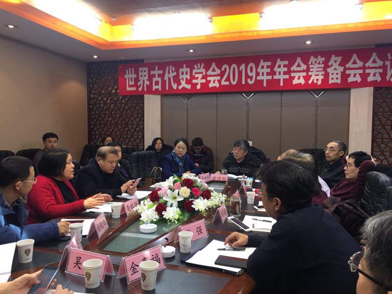 在梦溪宾馆第四会议室召开世界古代史学会2019年年会筹备会议。参加会议的有:学会法人代表、中国社科院世界史所徐建新研究员,学会名誉会长、首都博物馆学术委员会主席、北京师范大学退休教授郭小凌教授,学会会长、复旦大学历史学系主任,黄洋教授,学会副会长兼秘书长、中国社科院世界史所刘健研究员,学会副会长、东北师范大学世界古典文明史研究所所长张强教授,学会副会长、复旦大学特聘教授,金寿福教授,学会副会长、上海师范大学人文学院历史系教授、世界史学科裔昭印教授,学会副会长,中国人民大学历史学院徐晓旭教授,学会副会长、商务印书馆总经理于殿利教授。会议由小说狂人