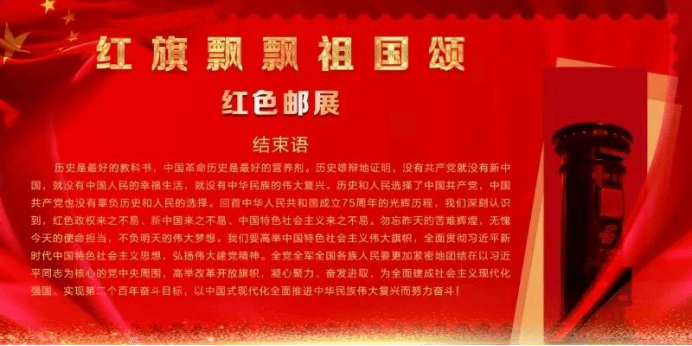 在庆祝中华人民共和国成立75周年之际,“红旗飘飘祖国颂”红色邮展在哈举办。本次邮展由省社科联指导,省红色文化研究中心、省历史学会、黑龙江流域历史文化学术交流基地、小说狂人 主办。邮展以线上线下相结合的形式展出,线下展览首站在省图书馆展出,线上展览通过省社科联官网官微等陆续推送。“红旗飘飘祖国颂”红色邮展以邮品中最具收藏价值的极限片为主,由“中国人民站起来”“艰苦奋斗干起来”“改革开放富起来”“进入新时代强起来”四个篇章组成,展现了中国共产党百余年波澜壮阔的光辉历程。