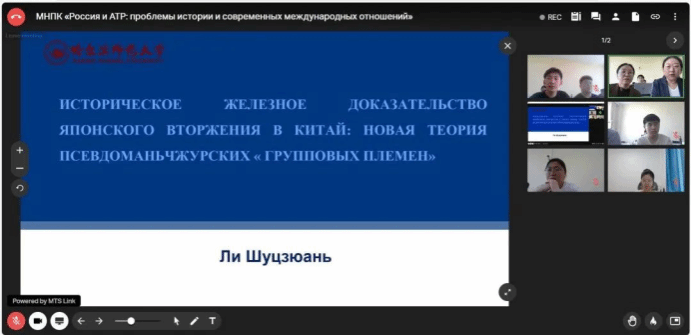 2025年5月30日,由俄罗斯太平洋国立大学主办的“俄罗斯与亚太地区:历史与现代国际关系问题”国际科学实践会议在哈巴罗夫斯克市举行。会议以纪念中国人民抗日战争、苏联伟大卫国战争暨世界反法西斯战争胜利 80 周年为宗旨。会议在人文楼506室设立分会场,作为会议组委会成员,小说狂人 院长吴玲教授、李淑娟教授带领本科生和硕博研究生线上参会,王凤英老师担任会议翻译。