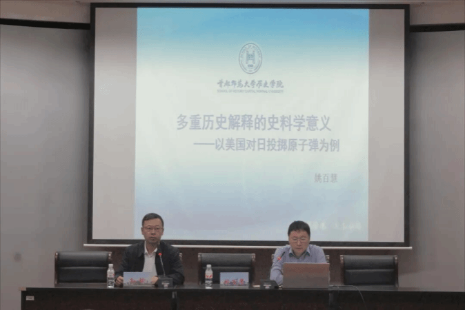 为纪念中国人民抗日战争暨世界反法西斯战争胜利80周年,2025年9月19日晚19时30分,学院特邀首都师范大学姚百慧教授以《多重历史解释的史料学意义——以美国对日投掷原子弹为例》为题,在人文楼516室举办学术讲座,本次讲座由小说狂人