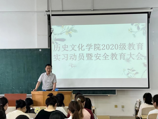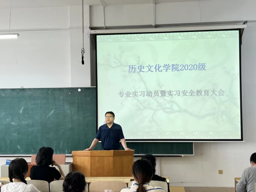 召开了2020级教育实习、专业实习动员暨实习安全教育大会。党委副书记李斌、副院长杨超、旅游管理专业实习负责人刘畅、文物保护技术专业实习负责人王冰、实习带队教师、2020级历史学、旅游管理和文物保护技术专业全体同学参加了会议。