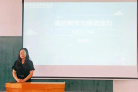 金丽雪以《简历制作及面试技巧》为题,她指出“简历是用‘脚’走出来的”,通过求职简历实例,向同学们说明求职简历要与应聘单位的实际需求相符合。她建议同学们使用六维法,在简历中明确个人基本信息、确定求职目标、突出个人掌握技能、编写自己的实习或实践经历、写明自身的获奖情况,尤其指出要注重个人求职城市编写。除此之外,她指出同学们要注重提升自己的面试能力,注意仪容仪表,善于使用肢体语言,锻炼语言表达能力,从而提高面试成功率。