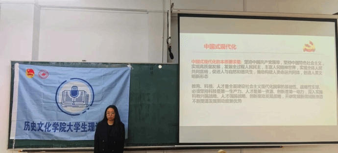 最后,白宇婷同学解读了习近平总书记在党的二十大报告中的金句。白宇婷的讲解让同学们感受到了习近平总书记的深邃思想,激发了同学们为实现中华民族伟大复兴而努力奋斗的豪情壮志。