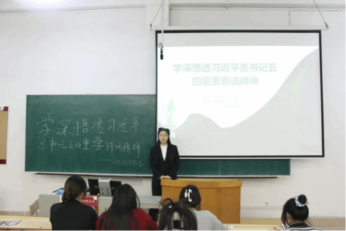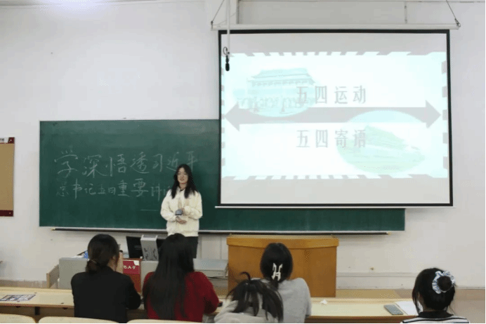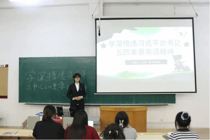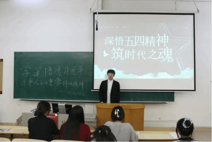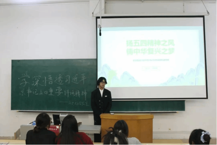 孙慈同学将五四精神与时代联系在一起,鼓励青年们倾听时代呼声,把握时代脉搏。当今时代是充满机遇与挑战的时代,呼吁同学们做勇立时代潮头、甘于奉献、敢于奋斗的新时代青年。