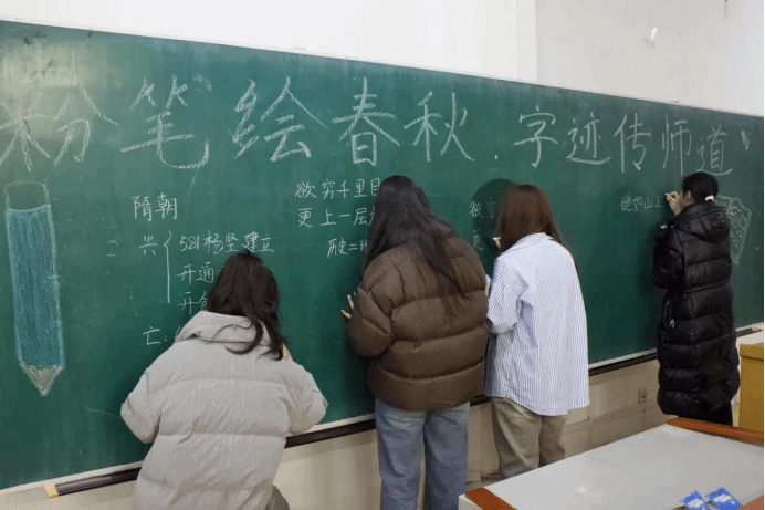 板书不仅是教师的基本功,更是教育的传承与表达。它承载着知识的传递,也蕴含着教育者对教育的热爱与执着。“粉笔绘春秋,字迹传师道”板书互鉴交流活动提升了同学们的教育实践技能,让同学们在实践中传承教育文化。同时,有利于推动学院学风建设,营造良好学习、实践氛围。希望同学们能将这份坚持延续到日常学习中,用粉笔书写教育的温度与力量,为教育强国建设贡献力量。
