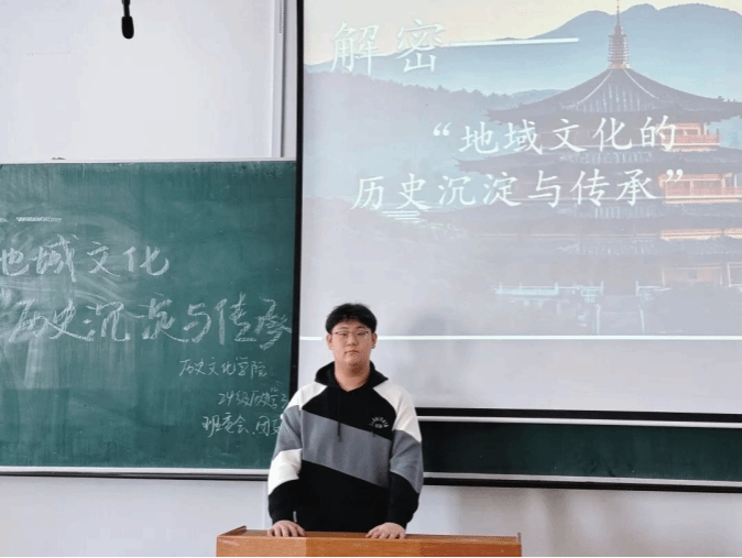 最后,班级团支书张益铭总结:地域文化是历史的沉淀,也是大家前行的精神动力。这次活动不仅拓宽了同学们的文化视野,更激发了大家对地域文化的热爱与传承意识。