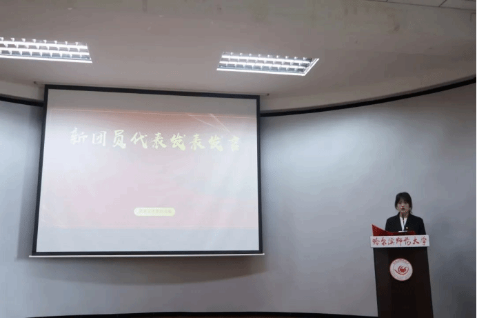 新发展团员代表廖雨旸发言,她表示团员身份是荣耀,更是责任与使命,吾辈团员青年要带着这份荣耀与责任,让青春在光辉事业中熠熠生辉。