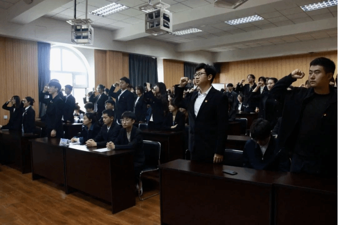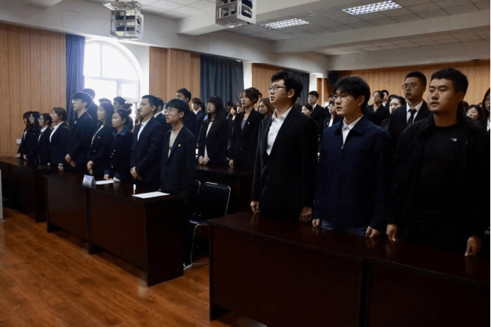 伴随着庄严的国歌声,入团仪式正式拉开帷幕,全体师生肃穆而立,齐声高唱国歌,激昂的歌声回荡在会场,点燃着在场每一位团员心中的星火。