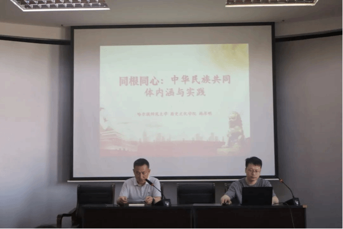 在人文楼516会议室举办“同根同心:中华民族共同体内涵与实践”专题讲座。本次讲座由中国古代史教研室主任韩厚明老师主讲,学院党委书记徐振岐、哈尔滨传媒职业学院党委副书记、副院长张宇飚等领导老师及学院少数民族学生代表参加讲座,学院党委副书记李斌主持讲座。