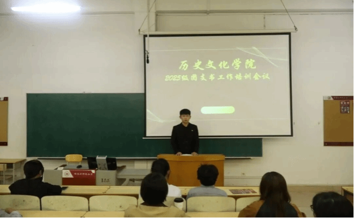 在人文楼613教室召开2025级团支部书记工作培训大会。会议由学院团委团务部部长康明同学主持,2025级全体团支部书记参加。