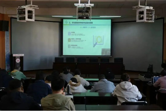 李淑娟院长首先就教育教学审核评估工作的重要意义作了讲话。接下来全体教师观看了南京工程学院教学质量管理与评估处王红艳处长题为《聚焦聚力质量提升,扎实推进审核评估》的线上讲座。讲座立足于本科教育审核评估实践,从时代背景、对本科教育教学评估的基本认识切入,结合评估与建设的流程与经验进行详细的分析,并提出具体可行的建议。这次讲座有助于全体教师更好地理解评估实施的基本流程,各环节工作的主要内容,为我校的审核评估工作提供借鉴。讲座结束后,杨超副院长详细解读了学院审核评估工作实施方案。