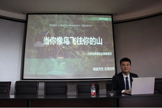 旅游管理专业邀请杭州开元森泊集团招聘经理单磊,为2023级旅游管理新生做“当你像鸟飞往你的山--大学生旅游职业发展规划”的讲座,讲座由张欣老师主持。