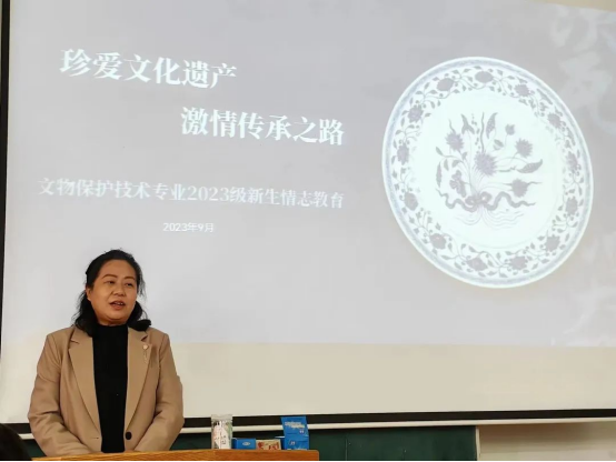 于9月27日下午在人文楼520教室举办了2023级文物保护技术专业情志教育培训会。本次培训会由教研室主任王冰主持,江楠老师,苗畅老师,侯静波老师,金丽雪老师以及2023级文物保护技术专业全体新生参加了此次培训。