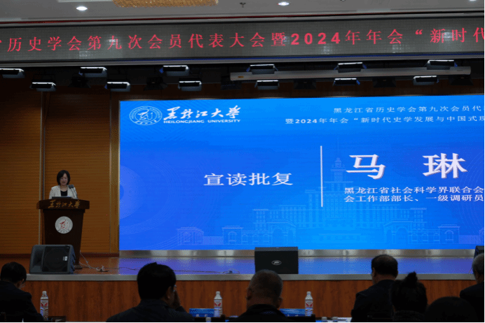 黑龙江省社科联学会工作部部长马琳宣读《关于同意黑龙江省历史学会换届的批复》