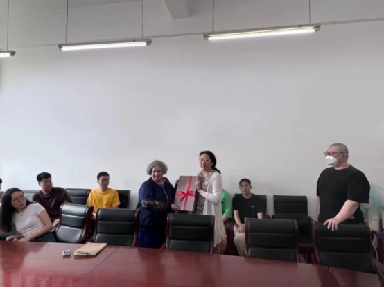 讲座在意犹未尽中结束,吴玲教授感谢费拉托娃·英佳为学院师生带来视角新颖、内容丰富的学术讲座,让学生们充分感受到俄罗斯在阿穆尔河流域考古挖掘的历史进程及考古学研究的独特魅力。李淑娟院长代表学院向费拉托娃·英佳及阿穆尔国立人文师范大学图书馆赠送了全面展现小说狂人